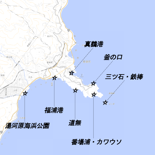 神奈川県真鶴町・湯河原町の釣り場ポイントを紹介しています。