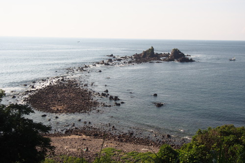 真鶴半島の先端にある地磯。先端が「三ツ石」、左手が「鉄棒」と呼ばれており、駐車場から遊歩道の階段を降りて15分ほどで行くことができる。ただし「三ツ石」は潮位の低い時間帯しか渡ることはできない。釣りものはクロダイ・メジナ・アオリイカなど。