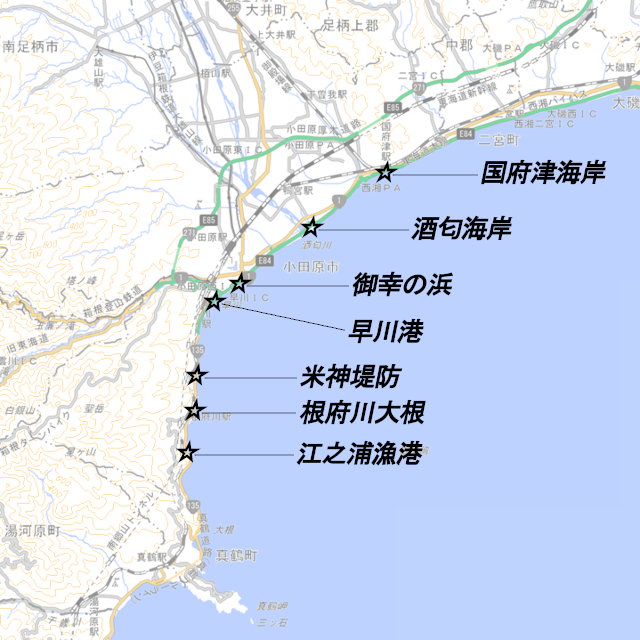 神奈川県小田原市の釣り場ポイントを紹介しています。