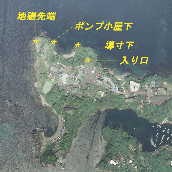 神奈川県三浦市、「油壷・マリンパーク下の磯」の釣り場ポイント情報です。