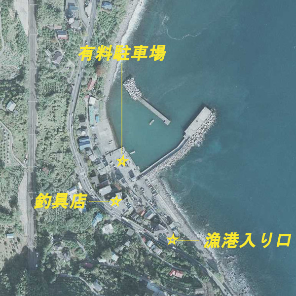 波止の先端内側が足場の良い人気の釣り場となっており、アジ・サバ・イワシ・メバル・カサゴ・クロダイ・メジナ・イシダイ・ソウダガツオ・アオリイカなどを釣ることができる。漁港の入り口が若干分かりづらいが、ファミリーフィッシングからベテランまで幅広く楽しめる人気の釣り場だ。港内には有料駐車場(1日1000円)も整備されている。