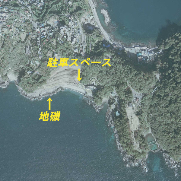 真鶴半島にある地磯。駐車スペースから近いためアクセスしやすく、クロダイ・メジナ・アオリイカなどを釣ることができる。釣り座も低く釣りやすい。