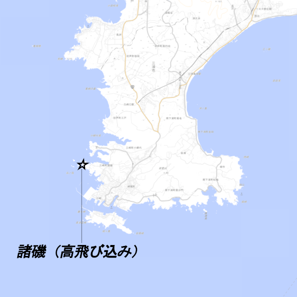 神奈川県三浦市、「諸磯(高飛び込み)」の釣り場ポイント情報です。