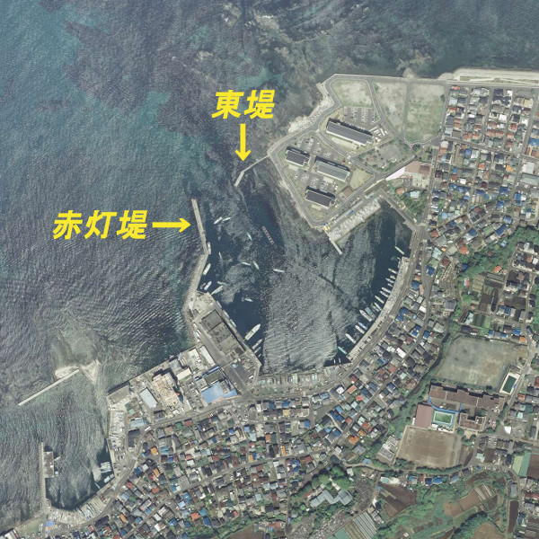 赤灯波止は立入禁止・つり禁止となっているため、東波止が主な釣り場となる。東波止ではアジ・サバ・イワシ・クロダイ・アオリイカなどが釣れるが、先端部を除き水深が非常に浅いため釣り座は限られる。また東波止手前の道路は駐車禁止となっているので注意しよう。