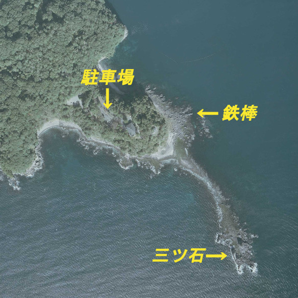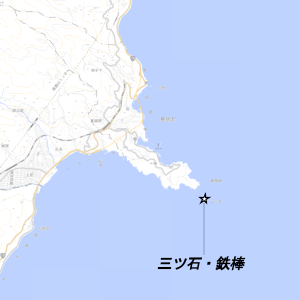 神奈川県足柄下郡真鶴町、「三ツ石・鉄棒」の釣り場ポイント情報です。