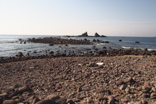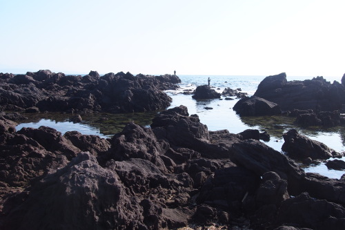 真鶴半島の先端にある地磯。先端が「三ツ石」、左手が「鉄棒」と呼ばれており、駐車場から遊歩道の階段を降りて15分ほどで行くことができる。ただし「三ツ石」は潮位の低い時間帯しか渡ることはできない。釣りものはクロダイ・メジナ・アオリイカなど。